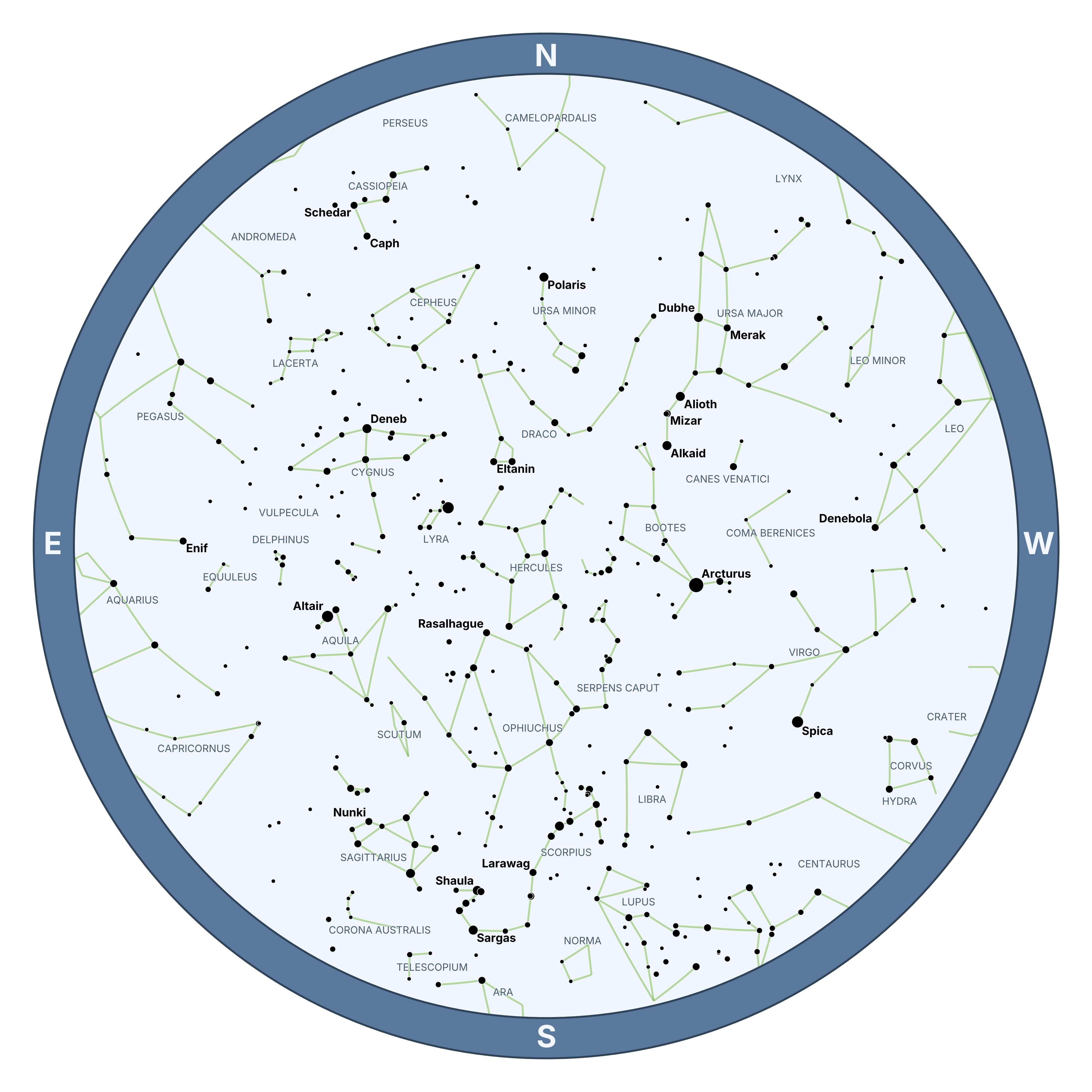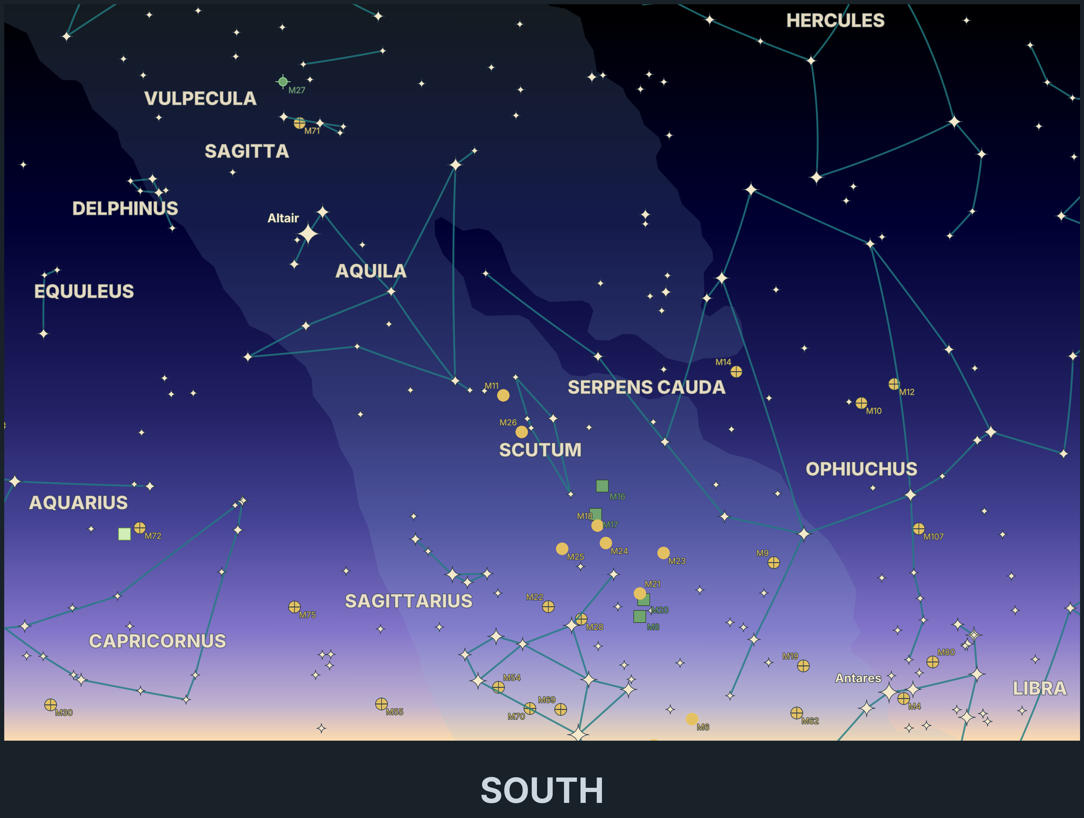 • ⭐ Zenith Charts - shows the entire sky at a specific time and place